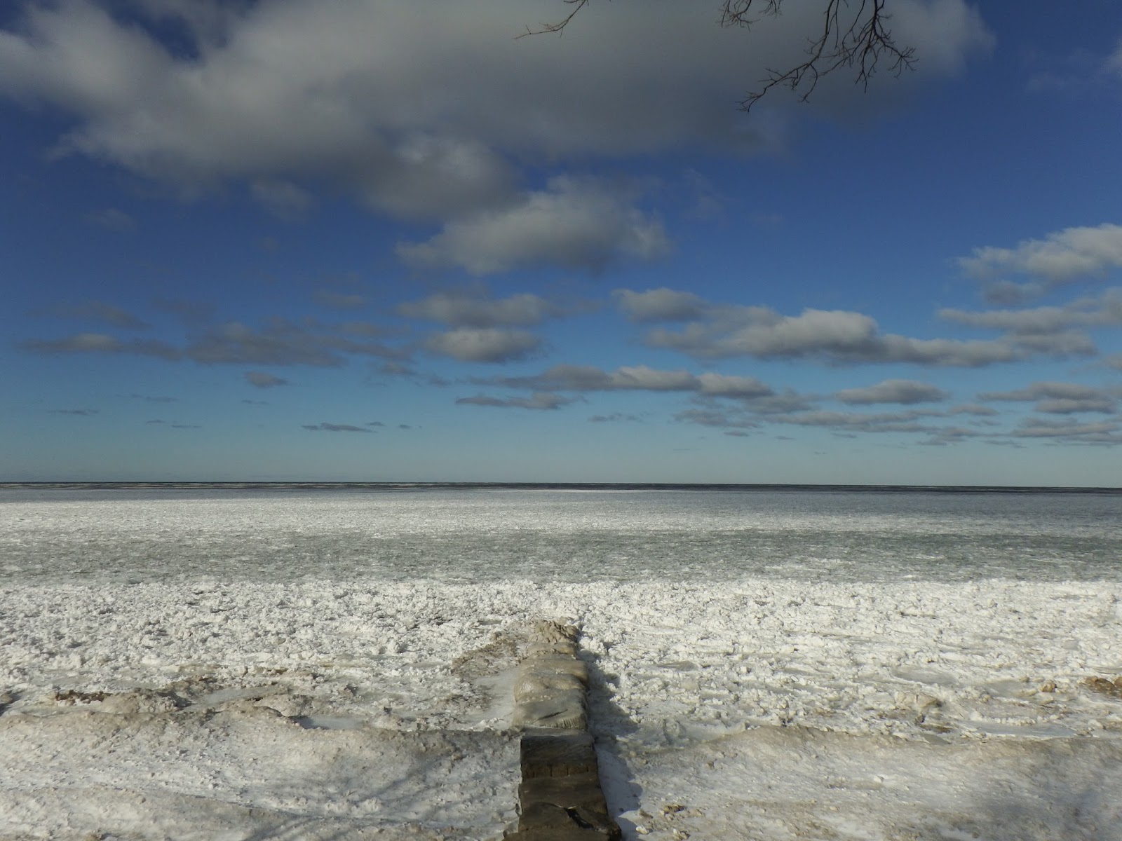 Some of the largest waves I have ever seen on Lake Erie yesterday. But one wouldn't know it without the use of a decent pair of binoculars, because the waves were way out past the ice pile up being forced in by the strong NE wind. Very cold, guessing with windchill - 9 or 10. Could only take a couple snapshots with my waterproof point & shoot before my fingers froze up.